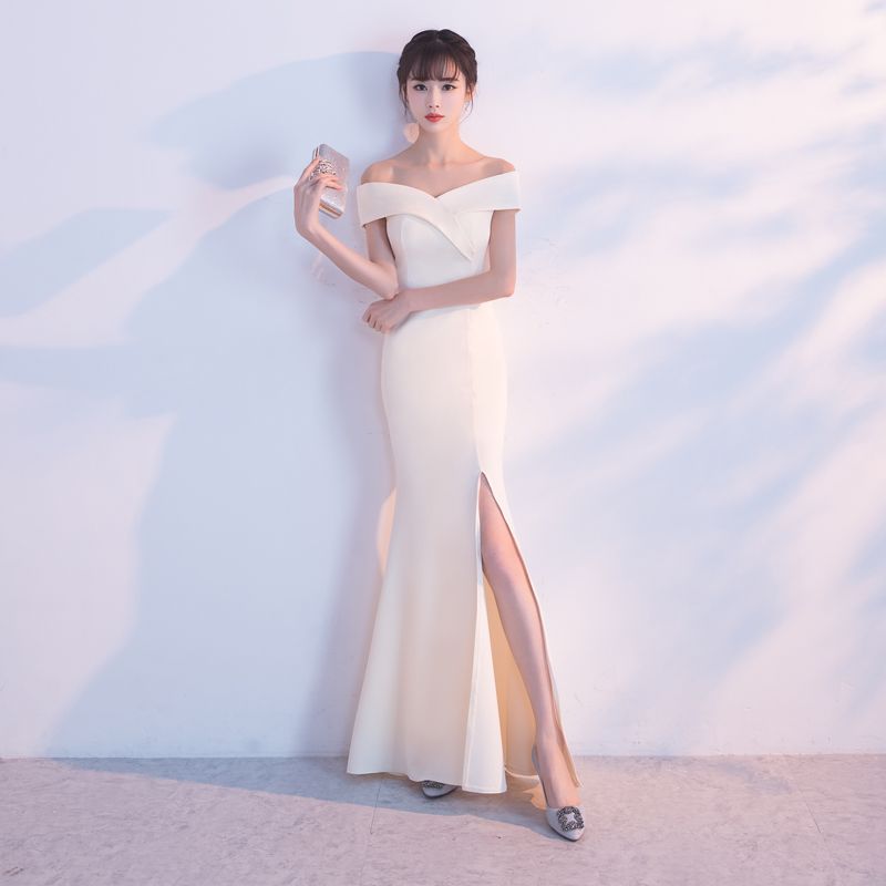 Elegant Lady Long Mermaid Split Evening Dress Prom Gown In