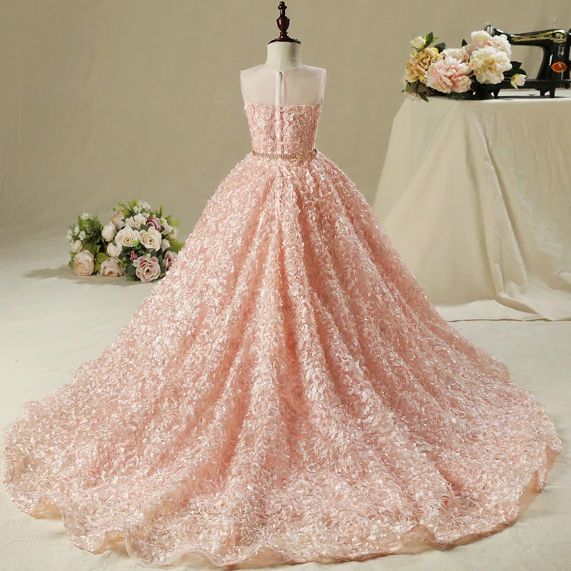 Gaun Anak Flower Girl Dress Girl Wedding Dress Pink Long Trailing