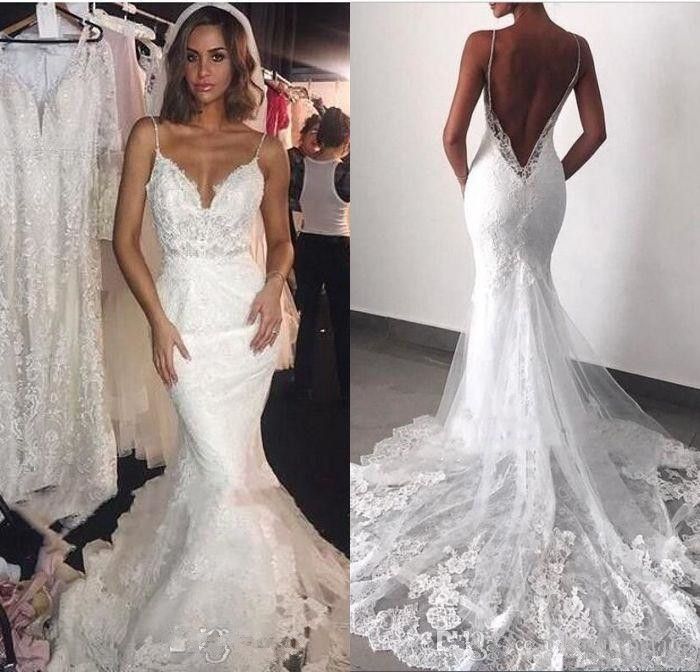 Buy 2019 Spaghetti Straps Wedding Dresses Mermaid Open Back With